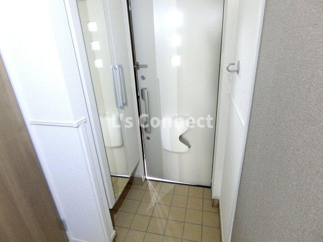 背の高い下駄箱には鏡付きで身だしなみチェック。